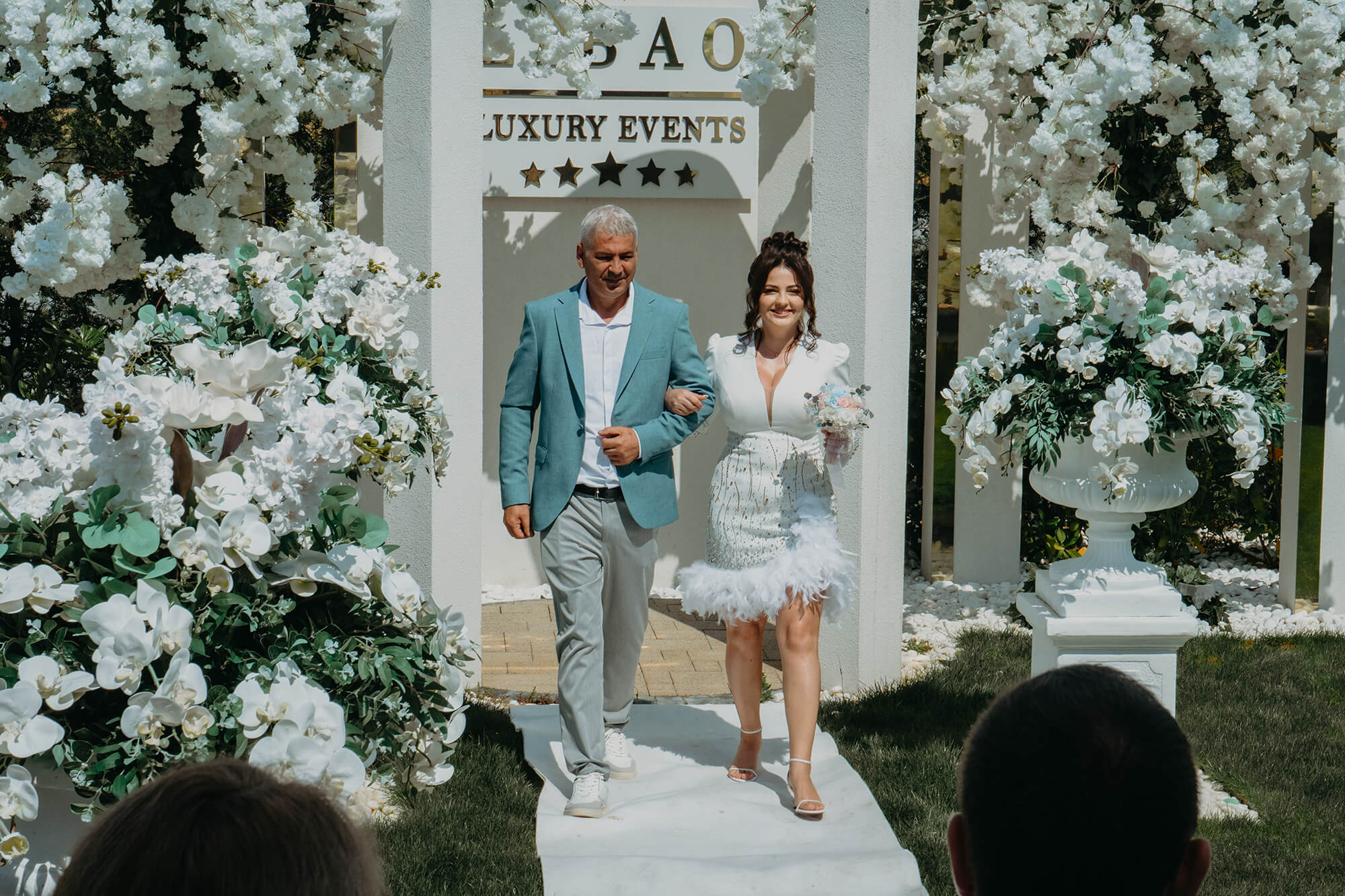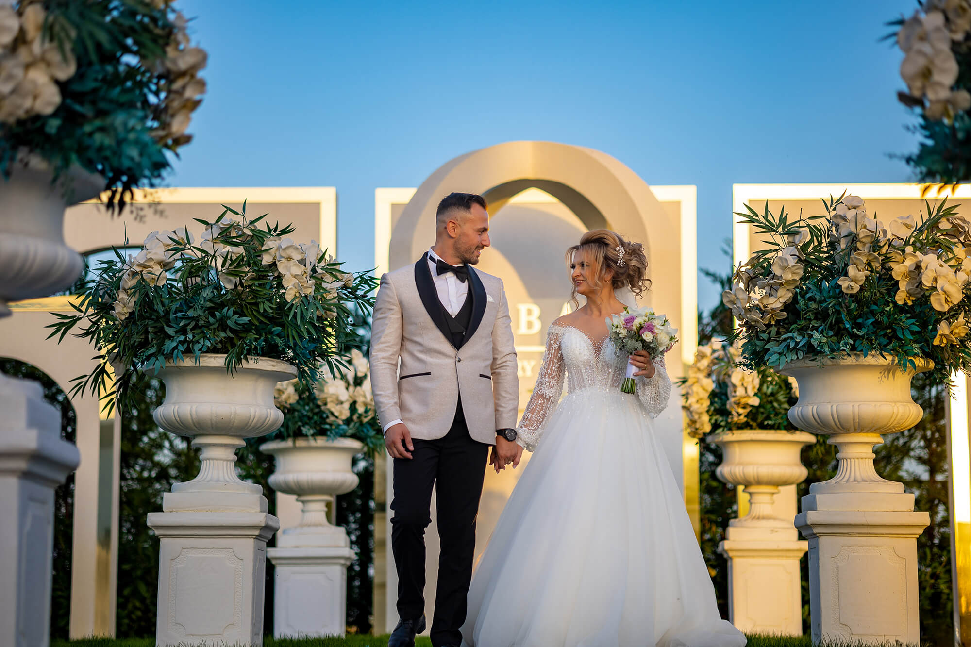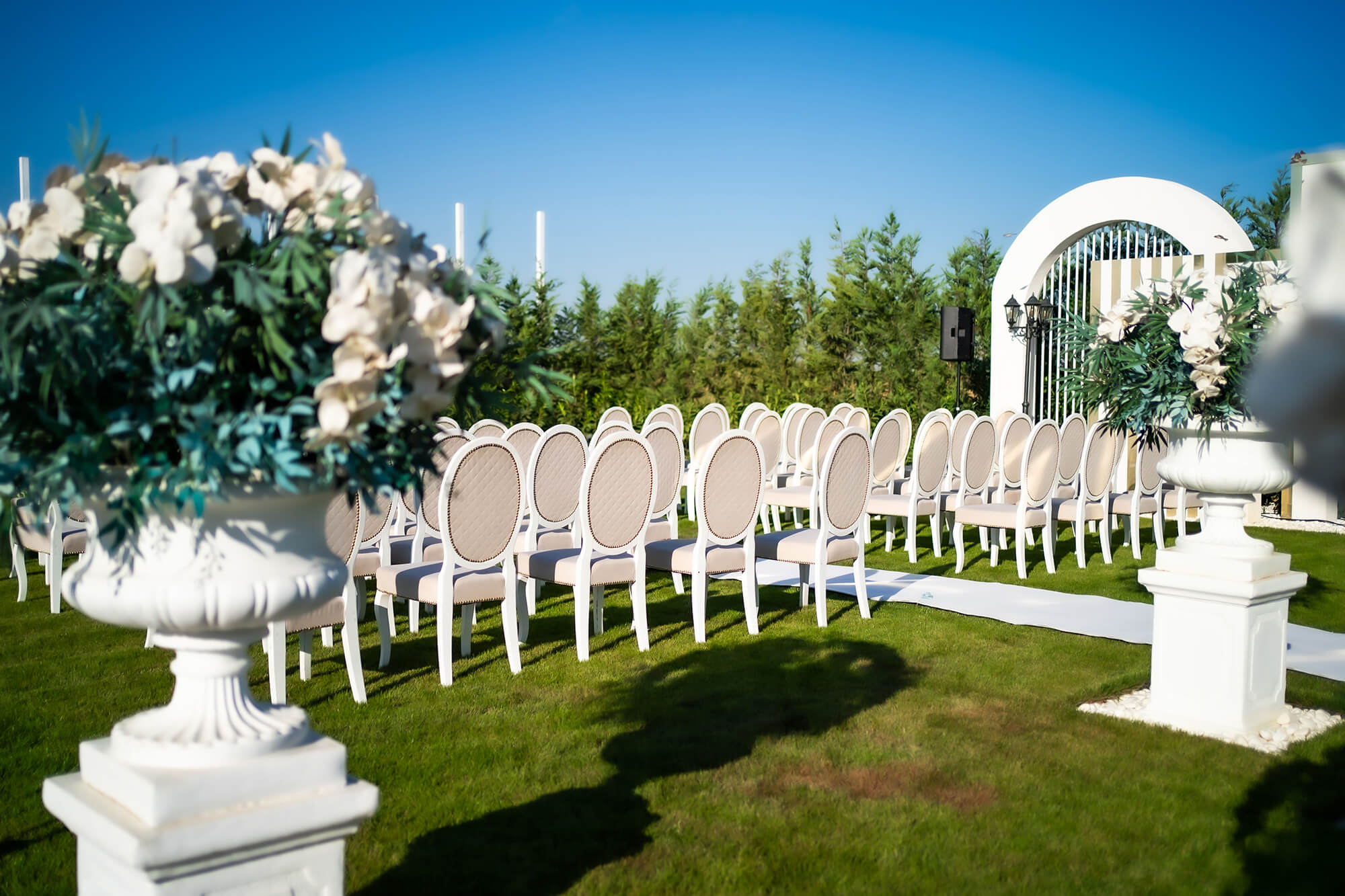 Impreuna cu echipa de design, am creat cele doua zone potrivite pentru ceremonii speciale. Fie ca preferi luciul apei intr-o zi de vara, fie ca alegi natura, verdeata si fantana impunatoare de la intrarea principala, ne vom ocupa de amenajarea unui cadru feeric, desprins din basmele cu printi si printese. Scaunele regale, covorul alb care reprezinta puritatea, impreuna cu aranjamentele florale albe, vor fi decorul perfect pentru o sedinta foto de neuitat.