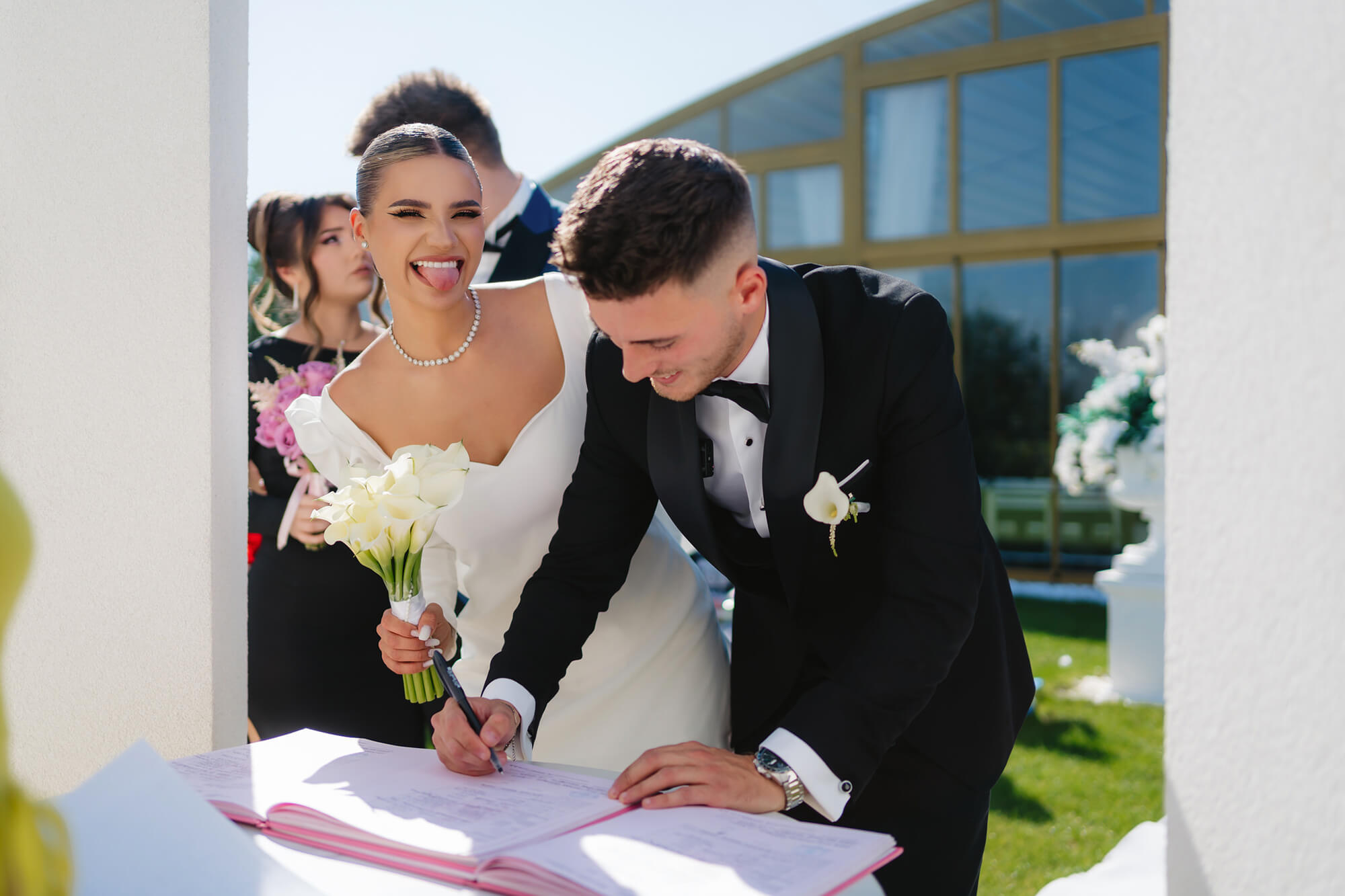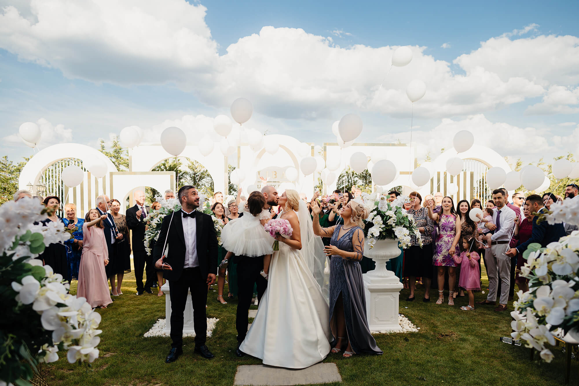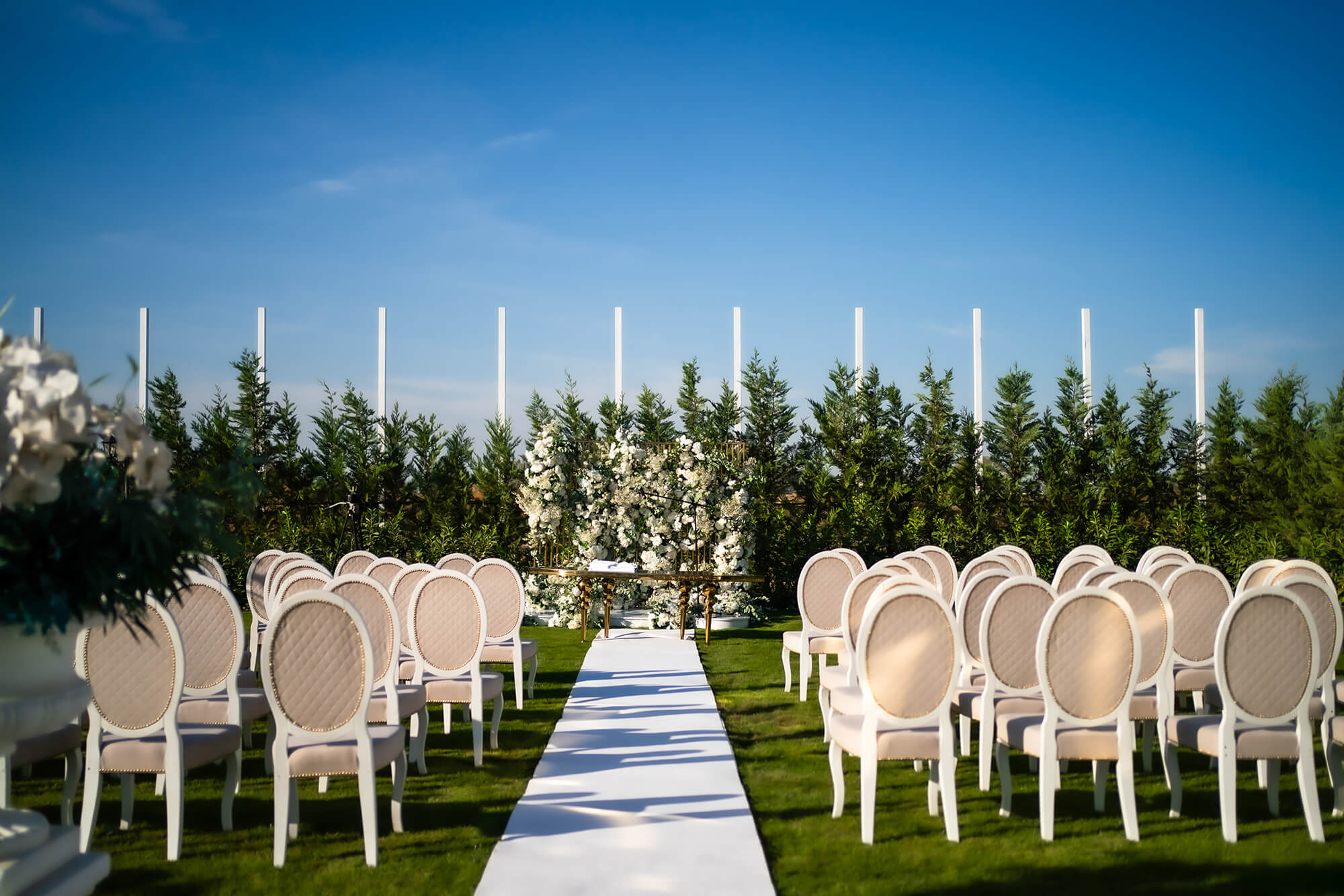Impreuna cu echipa de design, am creat cele doua zone potrivite pentru ceremonii speciale. Fie ca preferi luciul apei intr-o zi de vara, fie ca alegi natura, verdeata si fantana impunatoare de la intrarea principala, ne vom ocupa de amenajarea unui cadru feeric, desprins din basmele cu printi si printese. Scaunele regale, covorul alb care reprezinta puritatea, impreuna cu aranjamentele florale albe, vor fi decorul perfect pentru o sedinta foto de neuitat.