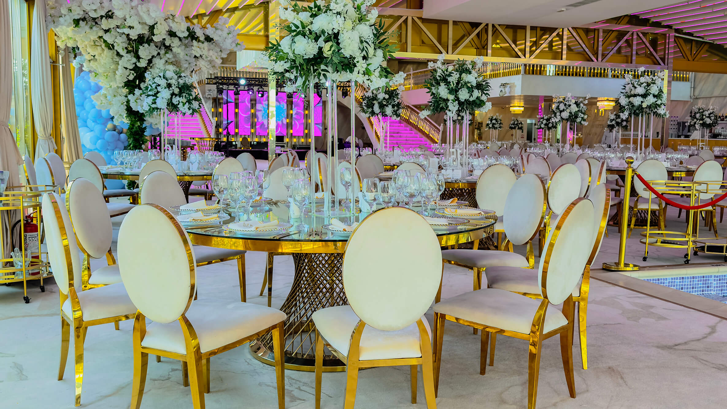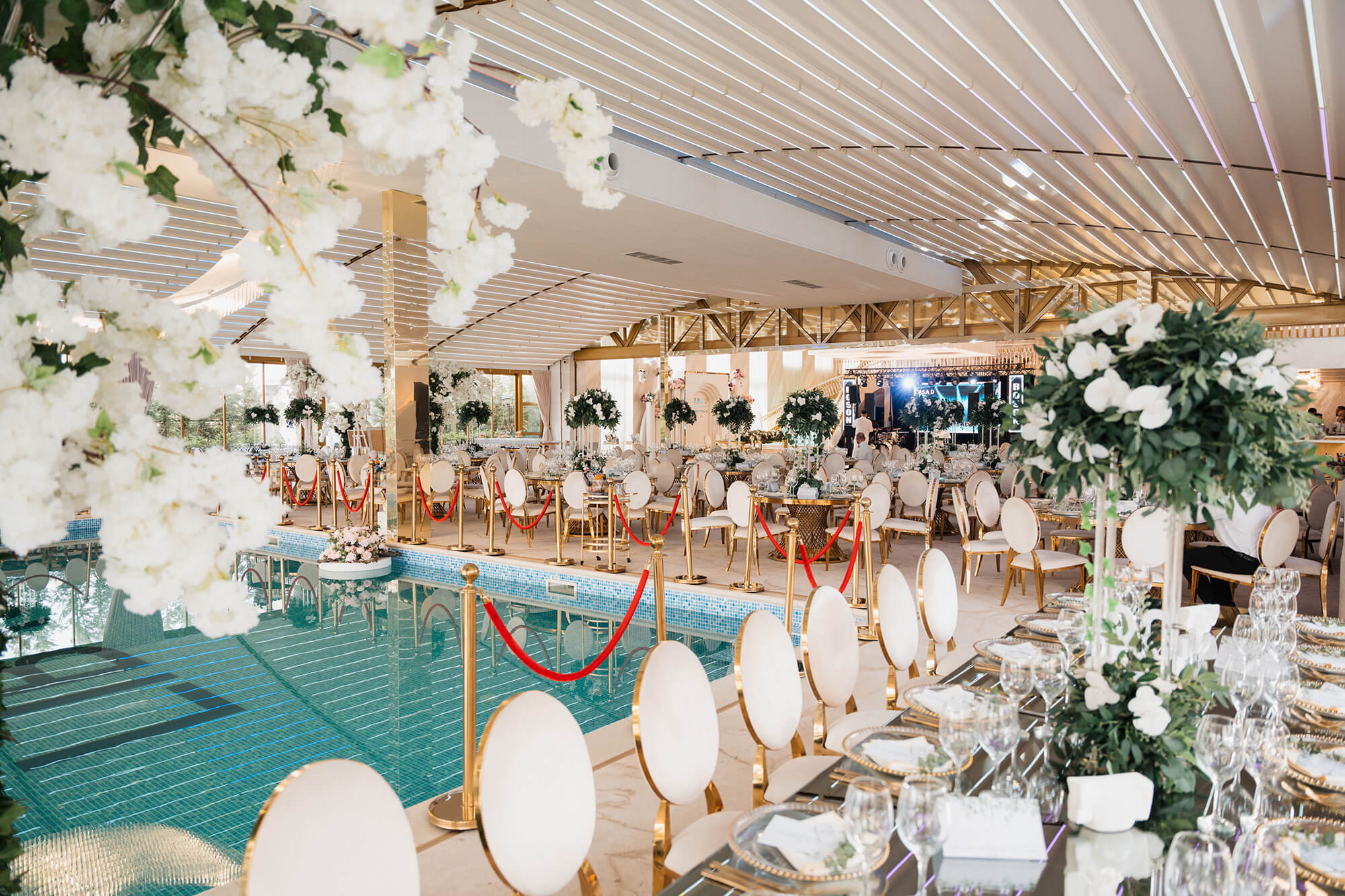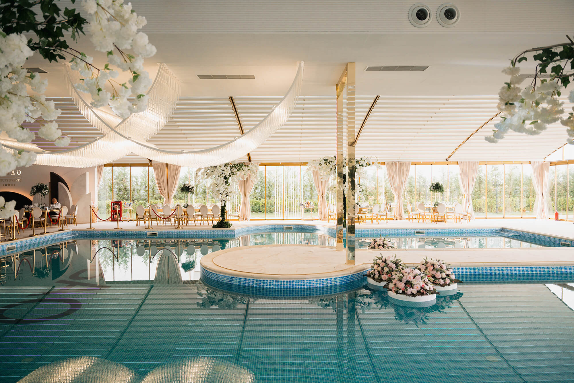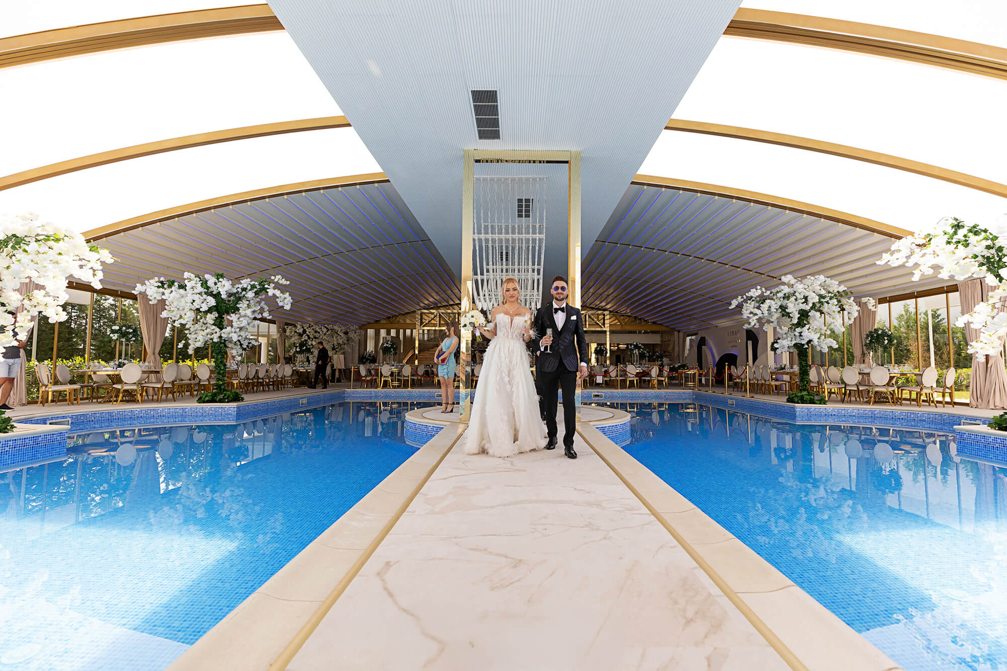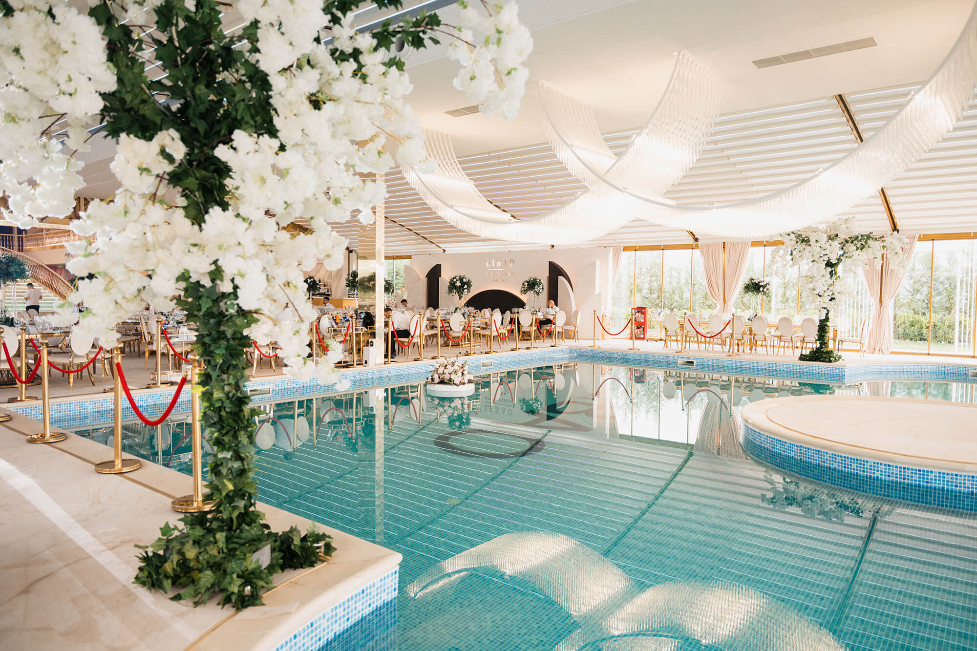 Cu o capacitate între 250-650 de persoane, salonul Eclipse este cel mai nou produs al complexului Libao. Cele două scări din cristale luminate încadrează zona principală a salonului – ringul de dans. Cu un concept inedit, tavan retractabil și un show de lumini spectaculos noaptea, acesta este singurul spațiu pentru evenimente cu PISCINĂ interioară din România. Fie că alegi să dansezi primul vals pe ponton sau să prezinți tortul suspendat din candelabru, ai garanția că îți vei surprinde invitații în cel mai plăcut mod.