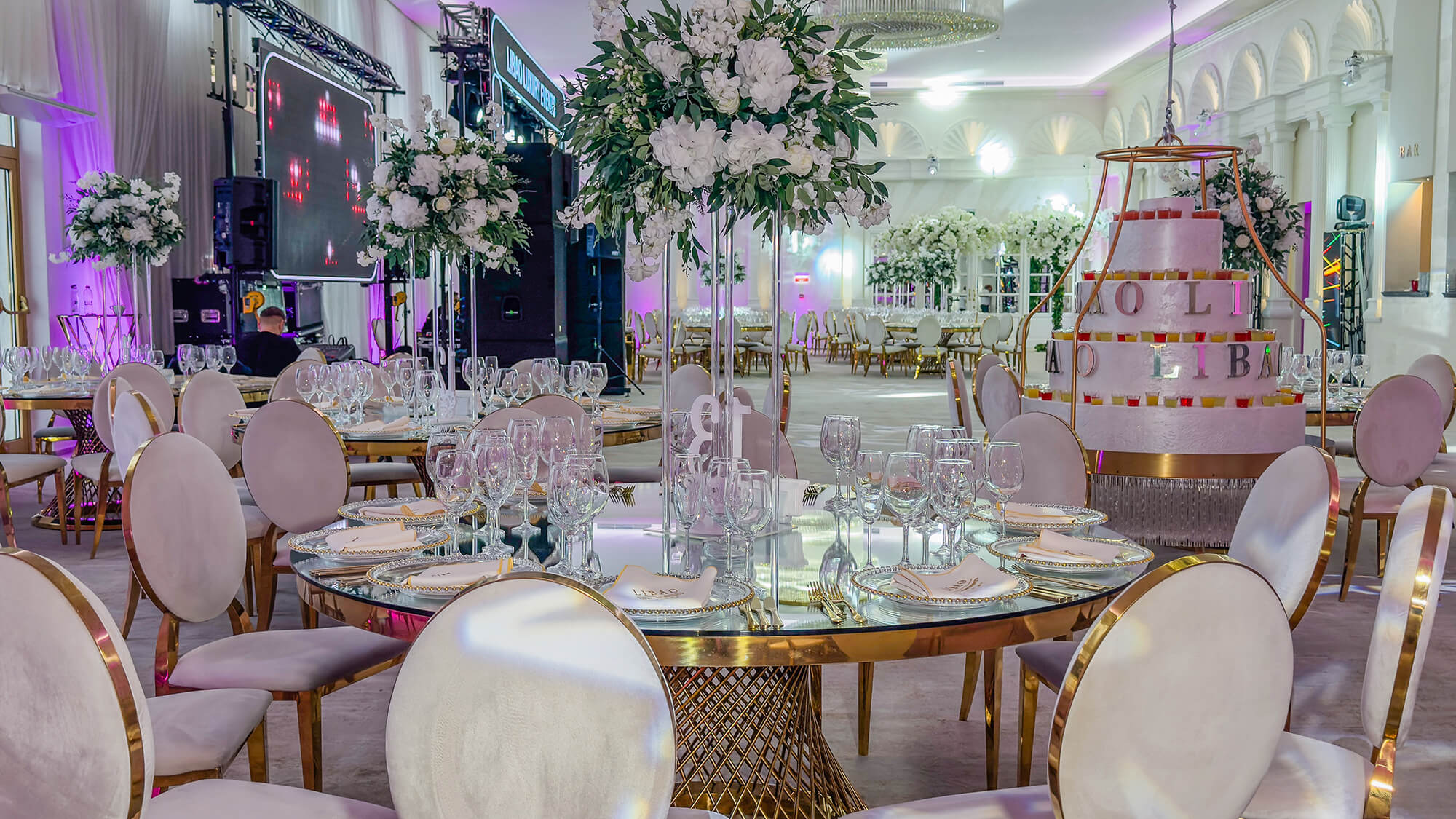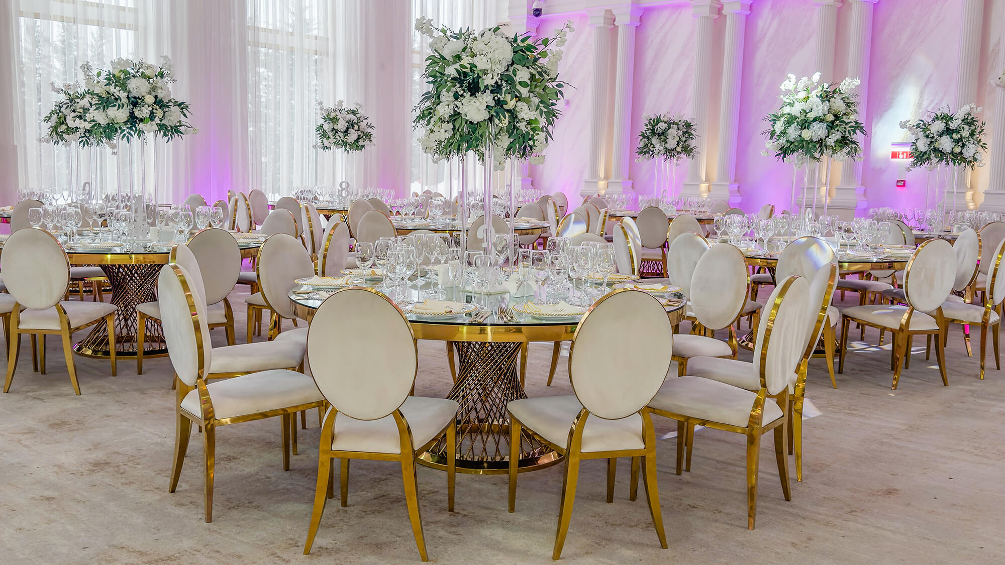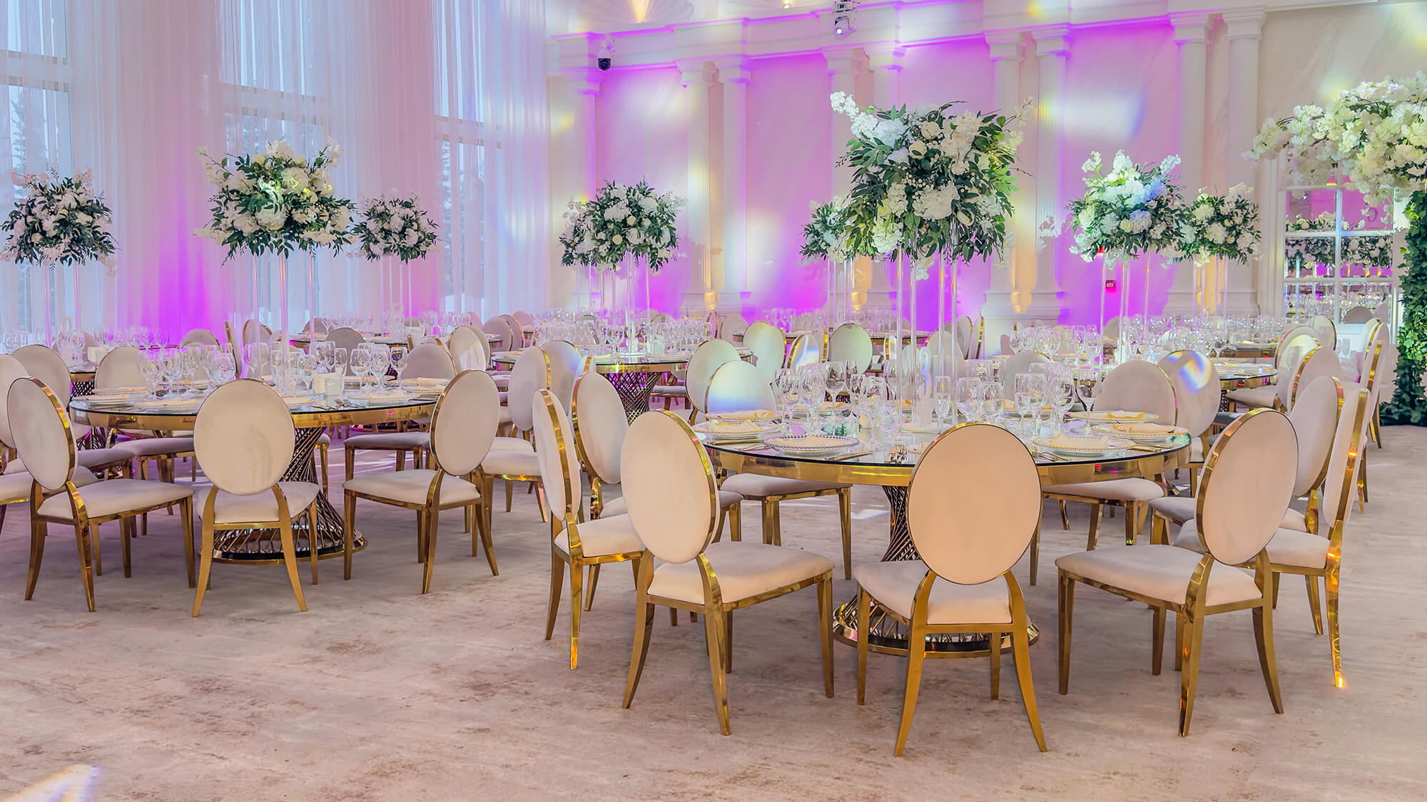 Cu o capacitate între 200-350 de persoane, salonul Elysee îmbină perfect stilul modern cu elementele regale, impunătoare, ale nunților la palat. Cu o arhitectură impresionantă și coloane atent luminate arhitectural, acesta reprezintă cadrul ideal pentru cei care își doresc un spațiu generos, aerisit și echilibrat. Zona de lobby, impunătoare prin înălțimea sa și reflexia oglinzilor, este locul perfect în care invitații tăi pășesc spre o noapte de neuitat.
