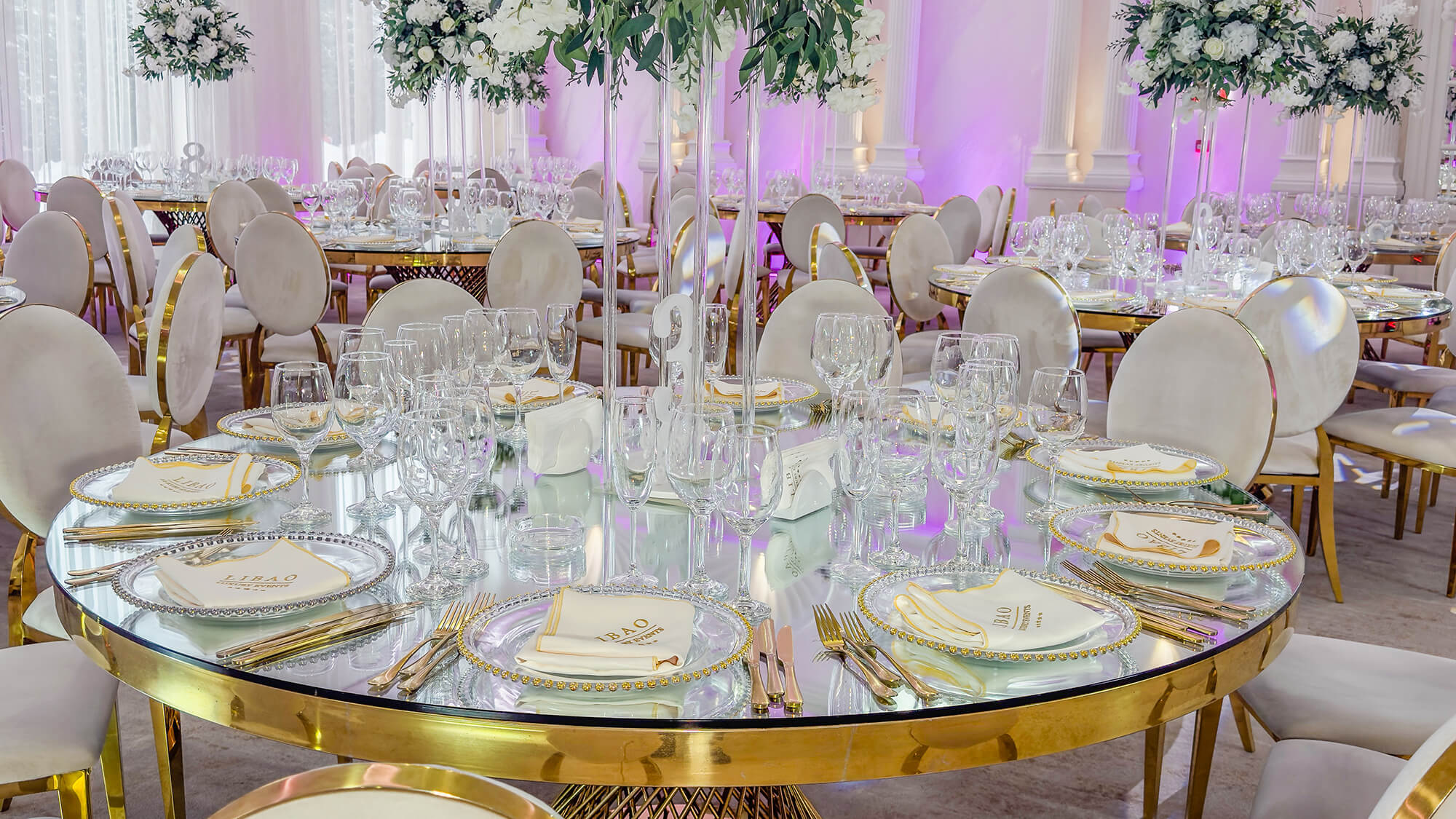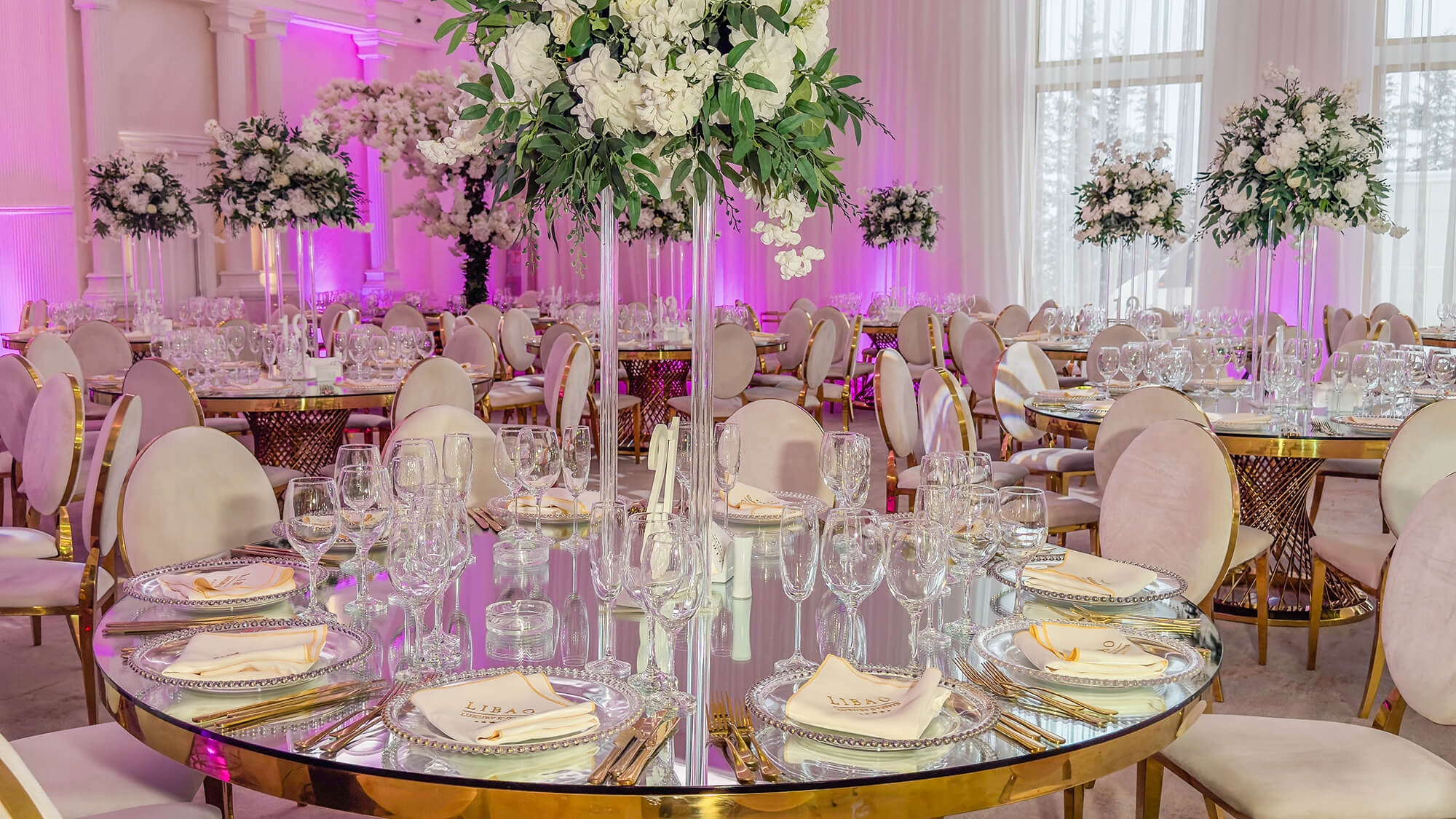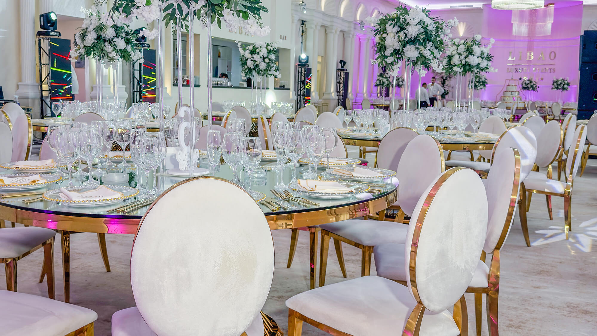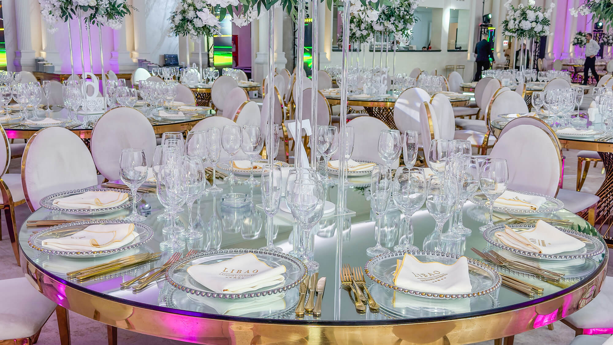Cu o capacitate între 200-350 de persoane, salonul Elysee îmbină perfect stilul modern cu elementele regale, impunătoare, ale nunților la palat. Cu o arhitectură impresionantă și coloane atent luminate arhitectural, acesta reprezintă cadrul ideal pentru cei care își doresc un spațiu generos, aerisit și echilibrat. Zona de lobby, impunătoare prin înălțimea sa și reflexia oglinzilor, este locul perfect în care invitații tăi pășesc spre o noapte de neuitat.